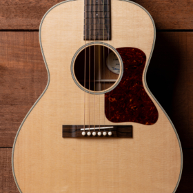 The L-DBO is larger than a 00, slightly smaller than the 000/OM, and designed with a 25” scale neck. It’s relatively narrow upper bout imparts a distinctive wedge-shaped appearance, setting it apart from the 0/00/000 “gene pool”. As significantly, the L-DBO conceals two secret weapons: An unusually large soundhole for its size, and narrow, 1/4” top bracing which combine to produce unusual power and presence in such a small package.